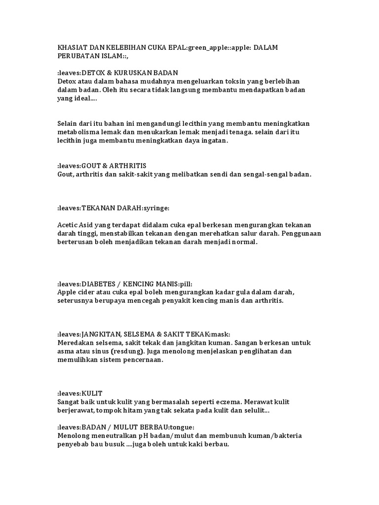 Khasiat Dan Kelebihan Cuka Epal Pdf